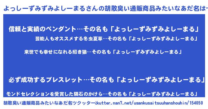 | 意味不明あだ名 | 『永久保存よっしーずみずみよしーまる』 |