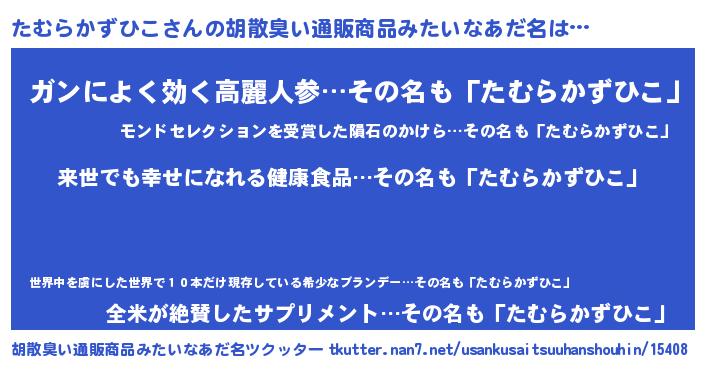 | 男性向けラノベタイトル風あだ名 | 『転生したらたむらかずひこだった件』 |