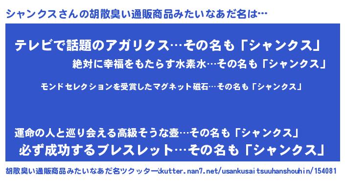 シャンクスさんの胡散臭い通販商品みたいなあだ名をツクッター!