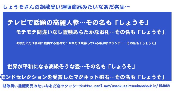 | ヒーロー風カッコイイあだ名 | 『仮面ショダー』『サイバー戦士ショウソ』 |