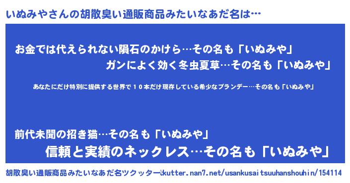 | 意味不明あだ名 | 『住所不定無職いぬみや(77歳)』 |