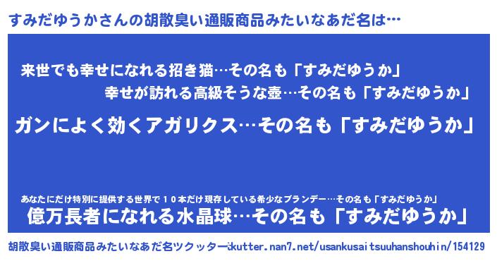 | ヘコむあだ名 | 『すみだゆうか(笑)』『すみにゅー』 |