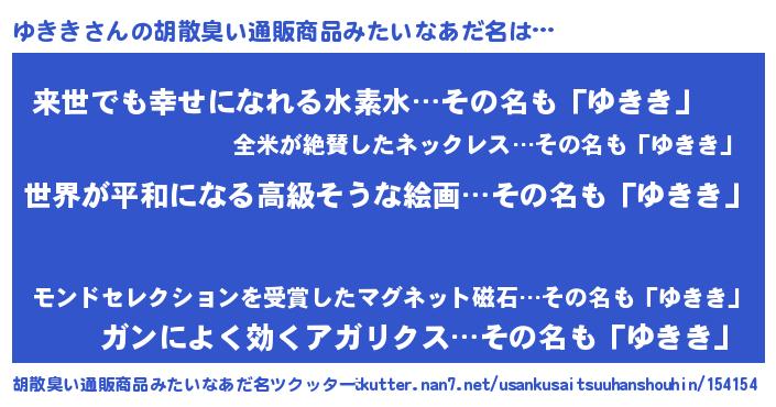 | 意味不明あだ名 | 『ゆききフォーエバー』『永久保存ゆきき』 |