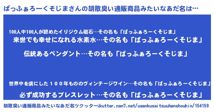 | 欧米人風あだ名 | 『ウサインばっふぁろーくそじま』 |