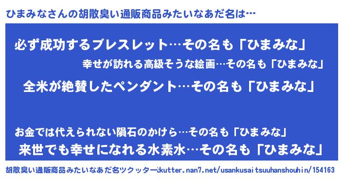 | 意味不明あだ名 | 『とにかく怪しいひまみな』 |