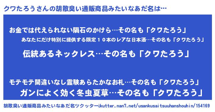 | 意味不明あだ名 | 『とにかく怪しいクワたろう』 |
