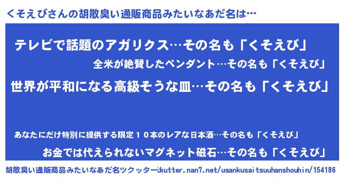 | 意味不明あだ名 | 『くそえびフォーエバー』『自称くそえび』 |