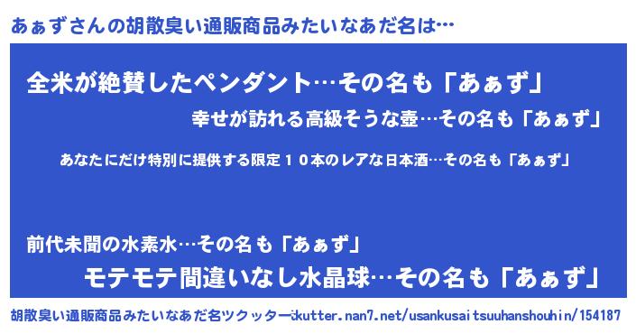 | 意味不明あだ名 | 『住所不定無職あぁず(39歳)』 |