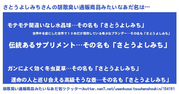 | 欧米人風あだ名 | 『ウサインさとうよしみち』 |