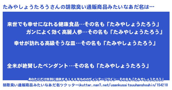 | ファンタジー風あだ名 | 『エターナルタミヤショウタロウー』 |