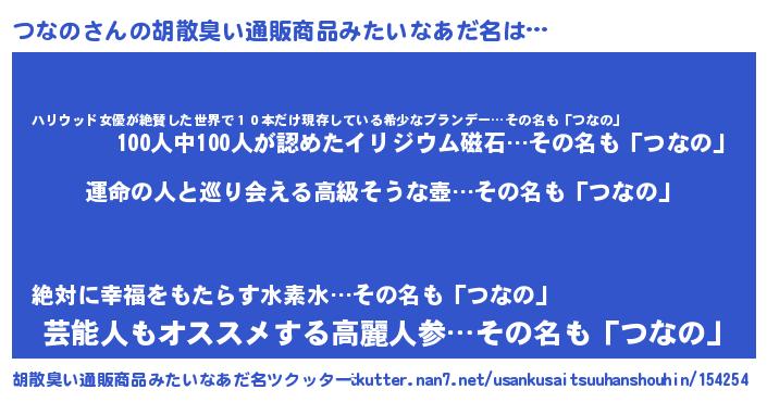 | 意味不明あだ名 | 『ヨモギ科つなの属』『自称つなの』 |