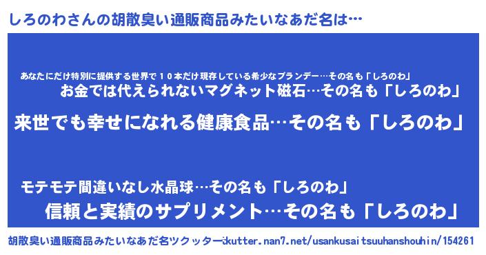 | ヘコむあだ名 | 『しろのわ(笑)』『しろっちょ』 |