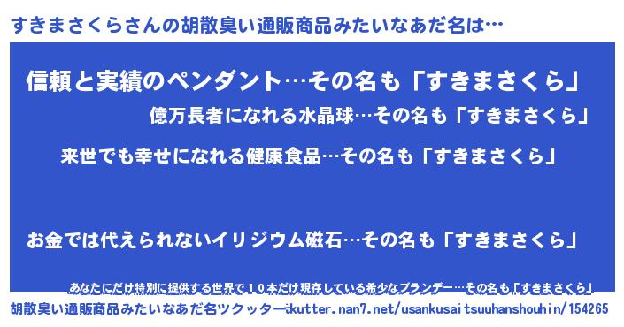 | 意味不明あだ名 | 『永久保存すきまさくら』 |