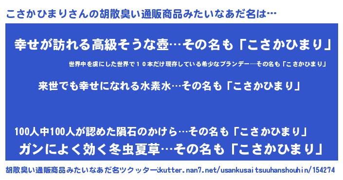 | ヒーロー風カッコイイあだ名 | 『ネオコサカヒマリ』『仮面コサダー』 |