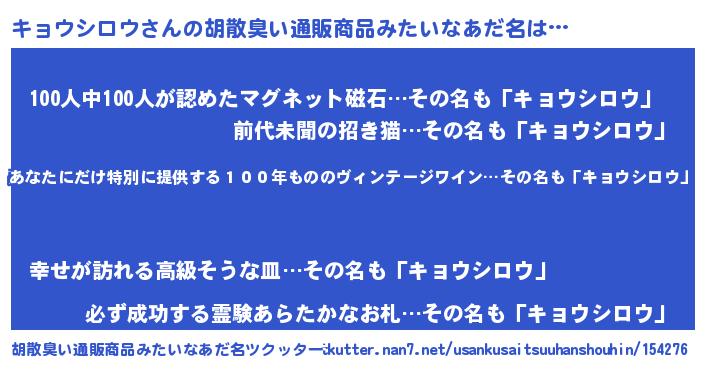 | ヘコむあだ名 | 『キョにー』『キョウシロウ(笑)』 |