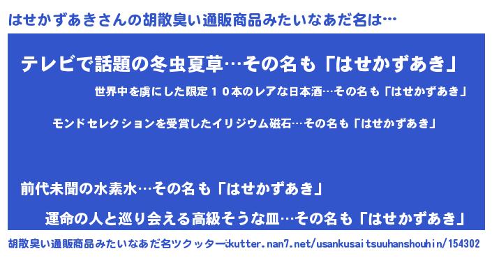 | 肩書あだ名 | 『はせかずあき助手』『はせかずあき総統』 |