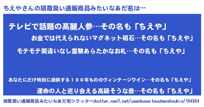 | ヒーロー風カッコイイあだ名 | 『スーパーチエヤ』『サイバー戦士チエヤ』 |