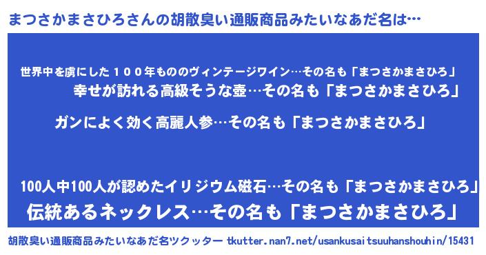 | 意味不明あだ名 | 『自称まつさかまさひろ』 |