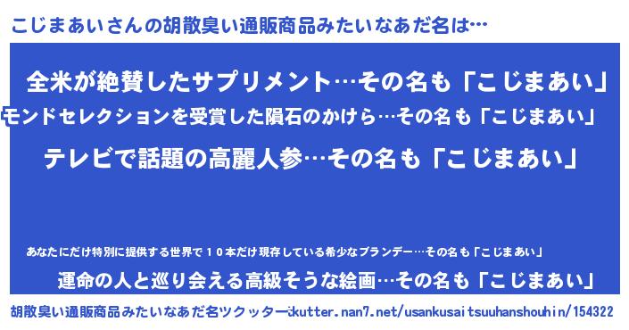 | 意味不明あだ名 | 『自称こじまあい』『ニラ科こじまあい属』 |