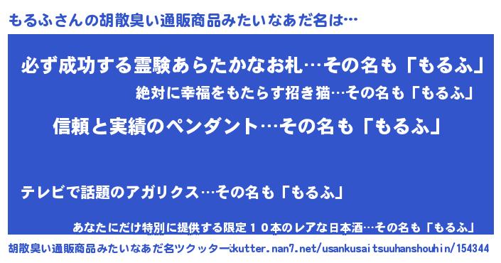 | 意味不明あだ名 | 『とにかく怪しいもるふ』『自称もるふ』 |