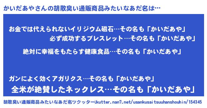 | 欧米人風あだ名 | 『ダルビッシュかいだあや』 |