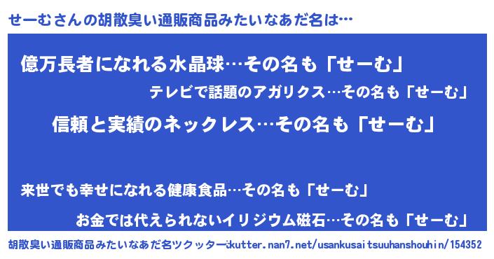 | ヘコむあだ名 | 『せーっ子』『せーにー』『なまこ酢』 |