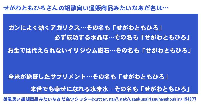 | 伝説のあだ名 | 『魔王と互角に渡り合う占い師せがわともひろ』 |