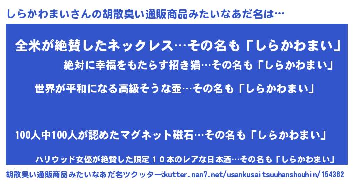 | 肩書あだ名 | 『しらかわまい大統領』 |