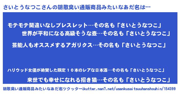 | 肩書あだ名 | 『さいとうなつこ閣下』 |