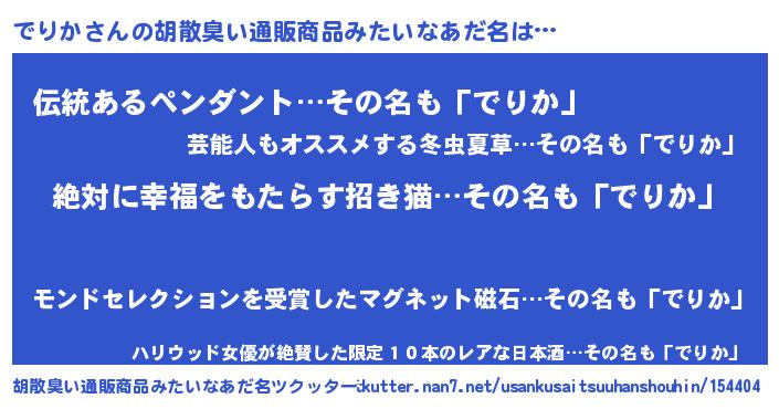 | 意味不明あだ名 | 『永久保存でりか』『自称でりか』 |