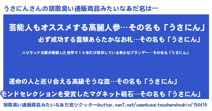 | 意味不明あだ名 | 『住所不定無職うさにん(77歳)』 |