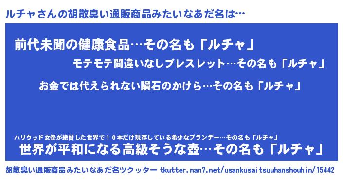 | ヘコむあだ名 | 『ルチャ(苦笑)』『酢こんぶ』 |