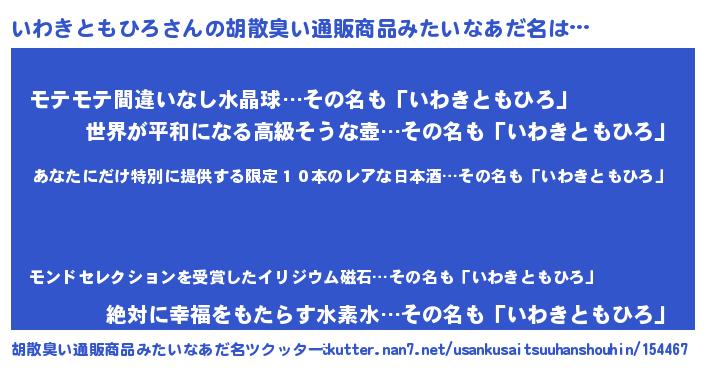 | ヘコむあだ名 | 『いわにゅー』『いわきともひろ(爆)』 |