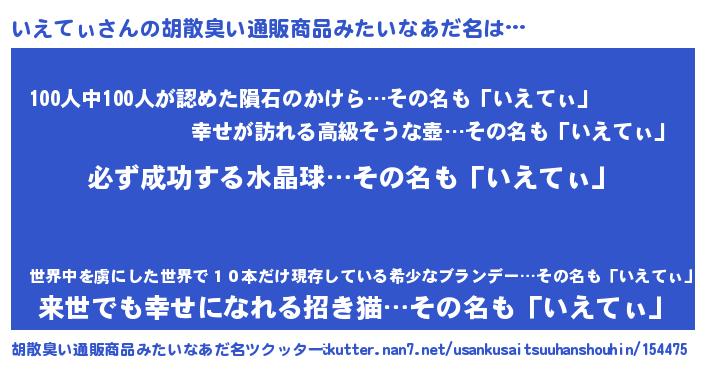 | 意味不明あだ名 | 『ペロリンいえてぃ』『永久保存いえてぃ』 |