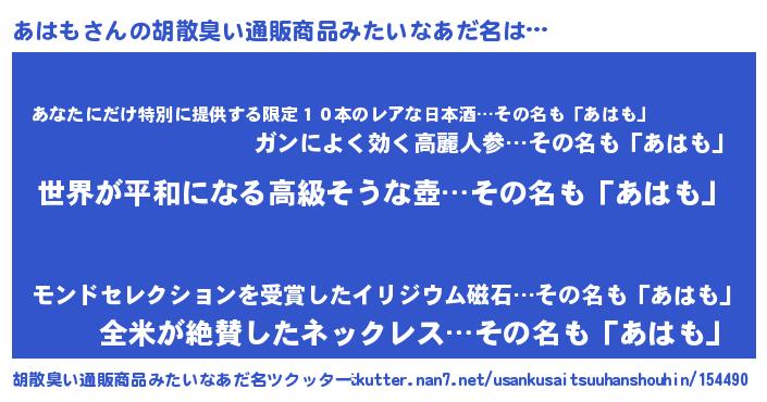 | 意味不明あだ名 | 『あはもフォーエバー』『自称あはも』 |