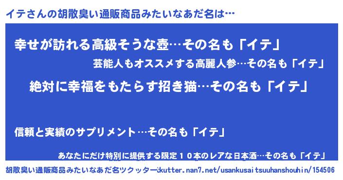 | 伝説のあだ名 | 『聞きしに勝る吟遊詩人イテ』 |