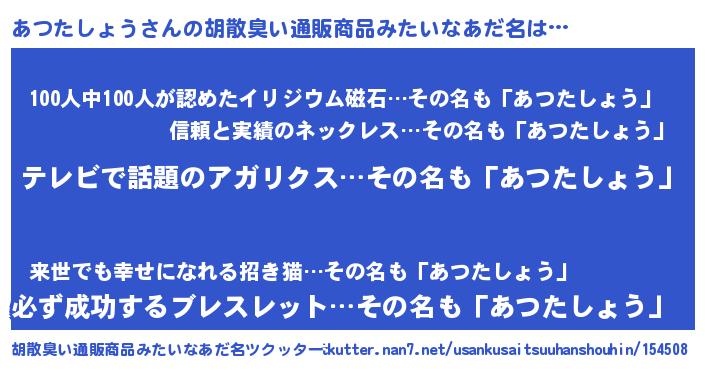 | 意味不明あだ名 | 『自称あつたしょう』 |