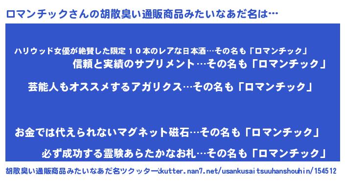 | 意味不明あだ名 | 『自称ロマンチック』 |