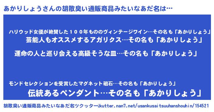 | ファンタジー風あだ名 | 『エターナルアカリショウー』 |