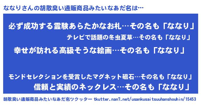 | 欧米人風あだ名 | 『ななりクリステル』『マイケルななり』 |
