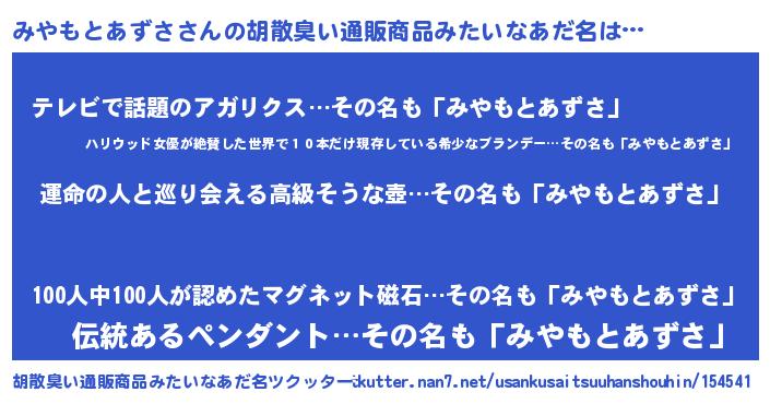 | 意味不明あだ名 | 『みやもとあずさフォーエバー』 |