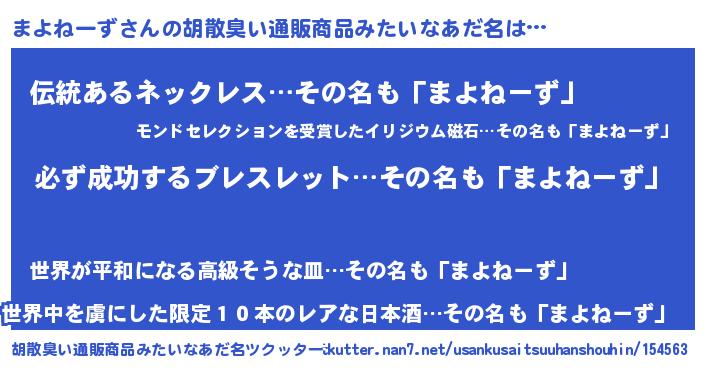 | 男性向けラノベタイトル風あだ名 | 『まよねーずの憂鬱』 |