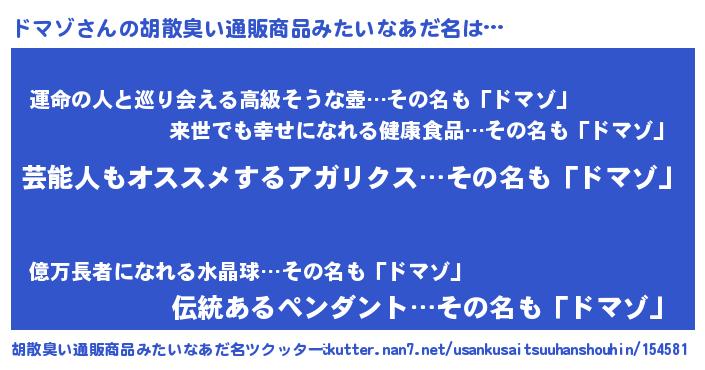 | ヘコむあだ名 | 『酢こんぶ』『ドマお』『ドマゾ(爆)』 |