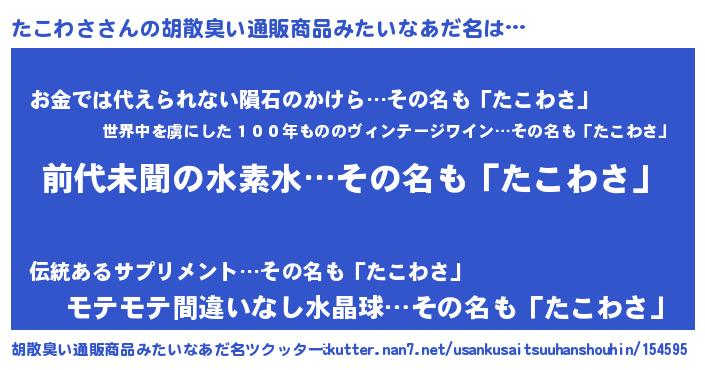 | ヒーロー風カッコイイあだ名 | 『ネオタコワサ』『慈愛の使者たこわさ』 |