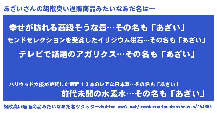 | ヒーロー風カッコイイあだ名 | 『最強戦士アザイ』『ウルトラあざいマン』 |