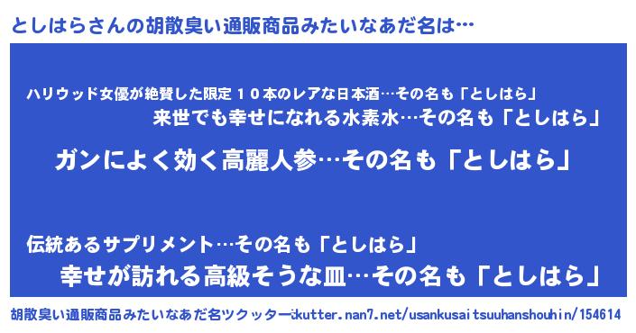 | 意味不明あだ名 | 『自称としはら』『としはらフォーエバー』 |