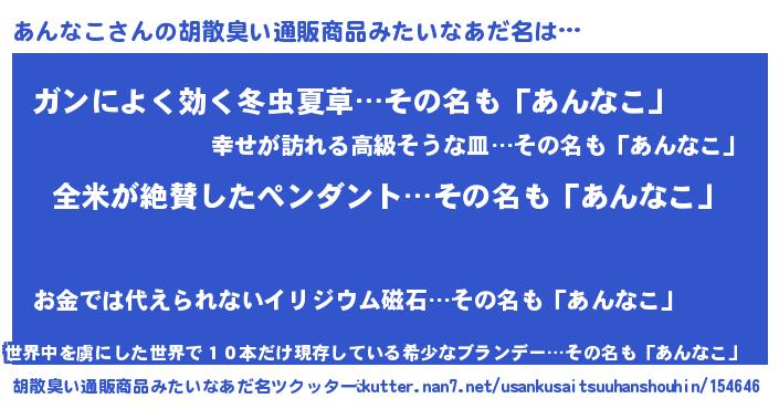 | ヒーロー風カッコイイあだ名 | 『天弓騎士アン』『超時空戦士アンナコ』 |