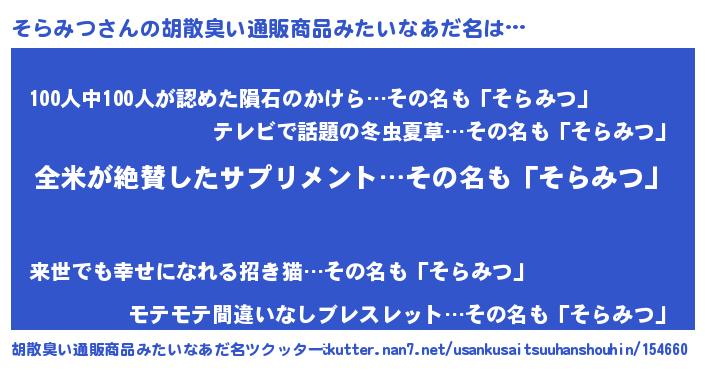 | 意味不明あだ名 | 『とにかく怪しいそらみつ』 |