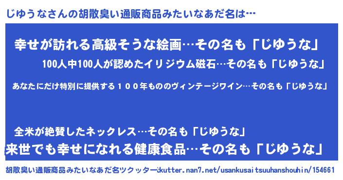 | 意味不明あだ名 | 『住所不定無職じゆうな(7歳)』 |