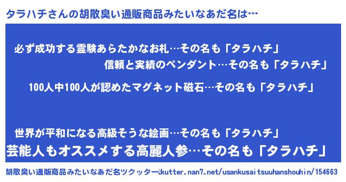 タラハチさんの胡散臭い通販商品みたいなあだ名をツクッター!